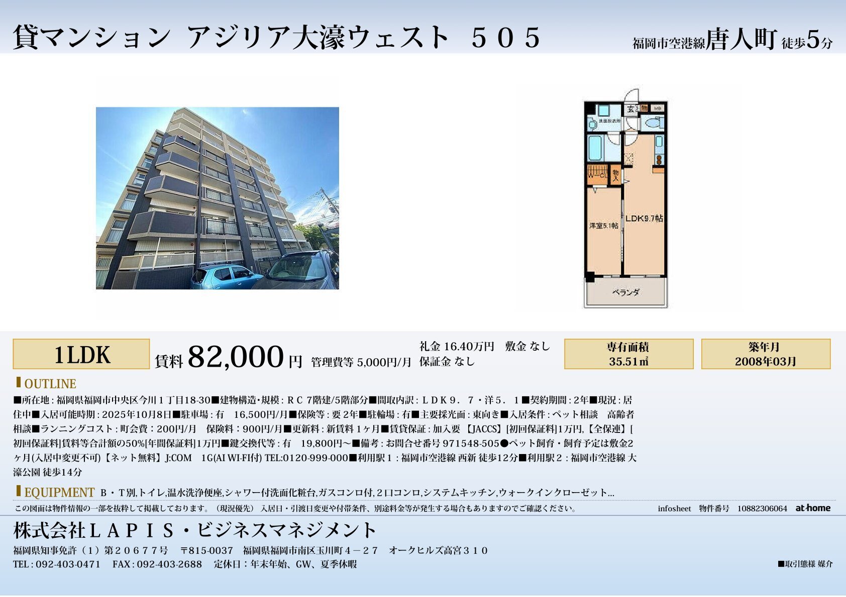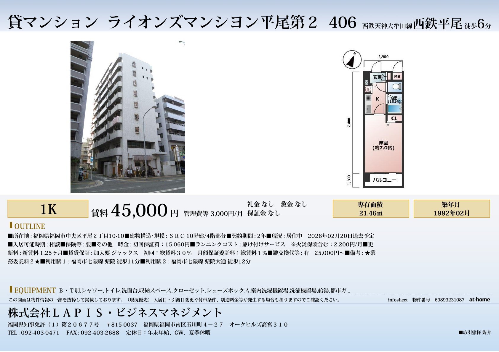 We offer rental properties in Fukuoka City that are available for foreign residents as well.