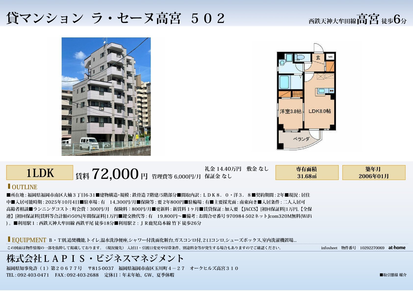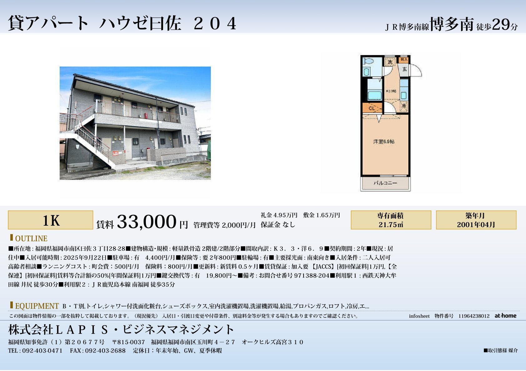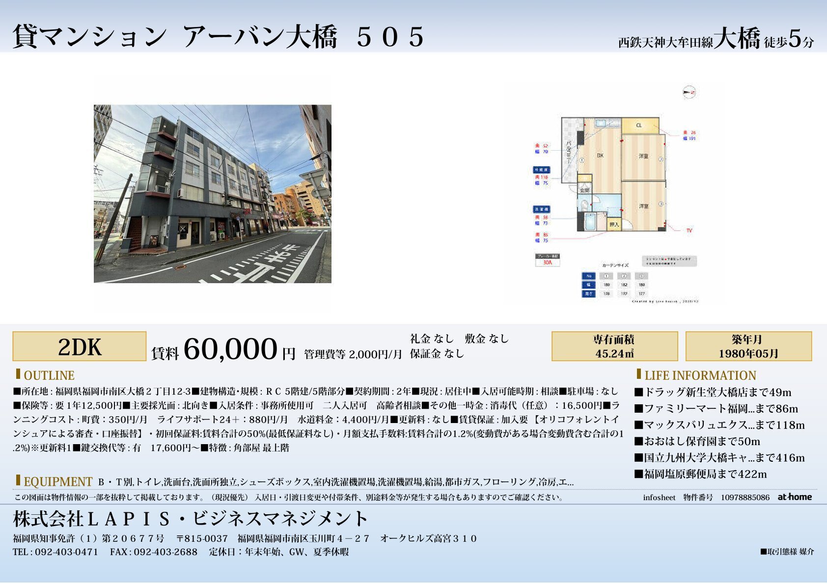 We offer rental properties in Fukuoka City that are available for foreign residents as well.